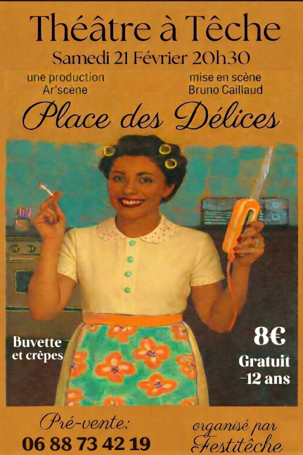 Dans les années 1960, place des Délices, des voisines partagent recettes et confidences en rêvant d'une vie plus libre. Une comédie pleine d'humour et d'humanité portée par la troupe Ar'scène, autour de la solidarité et des élans d'émancipation.